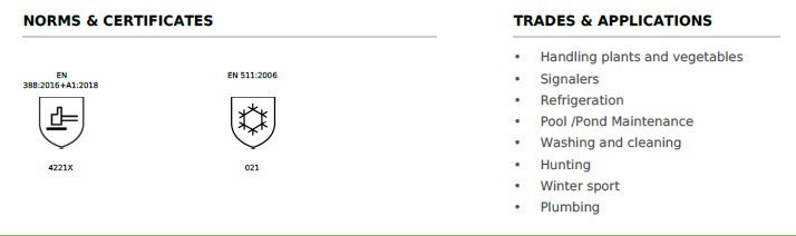 Showa 282-02 on vesitiivis, hengittävä ja vuorillinen käsine joka pitää kädet lämpiminä ja kuivina. Musta ja kestävä pinta kätkee pikkuliat ja parantaa käsineen elinikää ulkona tai likaisissa ympäristöissä. Jatkettu, kiristettävä ranneke suojaa rannetta kylmältä sekä kosteudelta. Käsineen ergonominen muotoilu vähentää käden väsymistä ja käsinettä käytetäänkin useissa vapaa-ajankin harrastuksissa kuten jääkiipeilyssä.